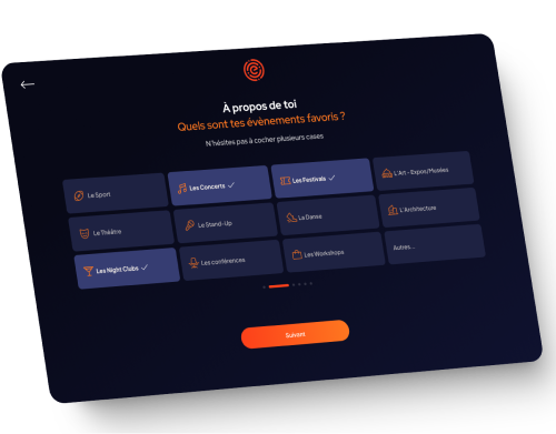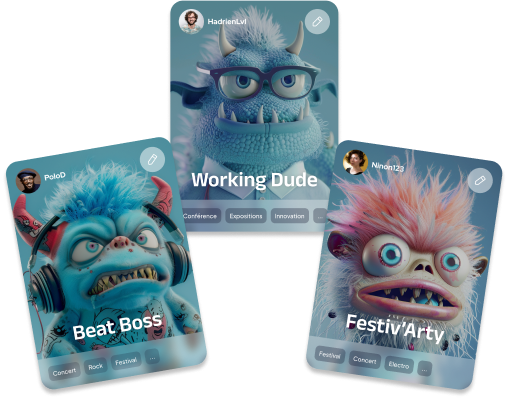 Après avoir rempli le formulaire, découvrez votre profil type. Généré sur-mesure selon vos préférences d’évènements, votre profil est modifiable et modulable à tout moment pour profiter d’une expérience utilisateur enrichie et inoubliable !